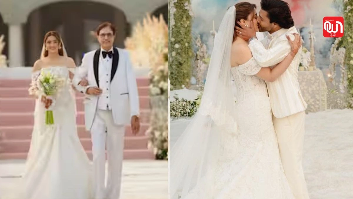 Nupur Sanon Wedding: नूपुर सेनन की शादी 2026, व्हाइट वेडिंग गाउन में परी जैसी दिखीं कृति की बहन