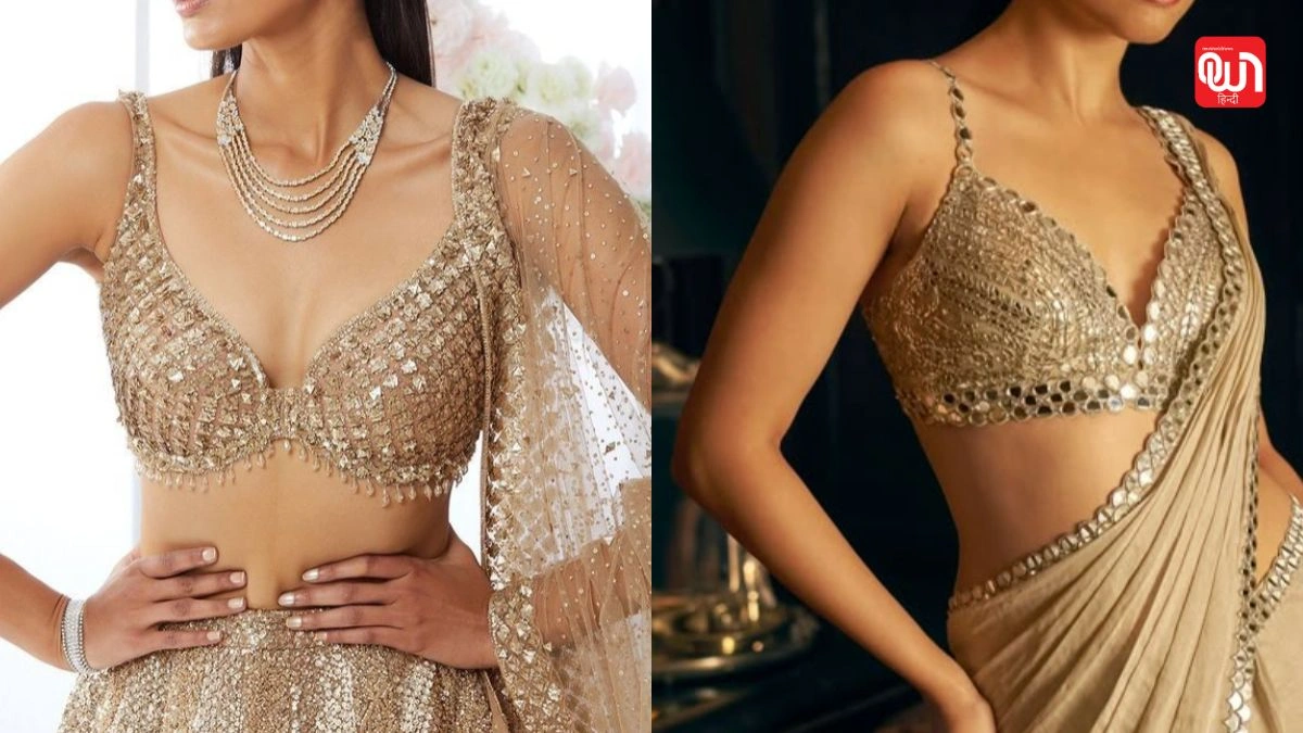 - स्लिम बॉडी: डीप नेक और क्रॉप ब्लाउज अच्छे लगते हैं।
